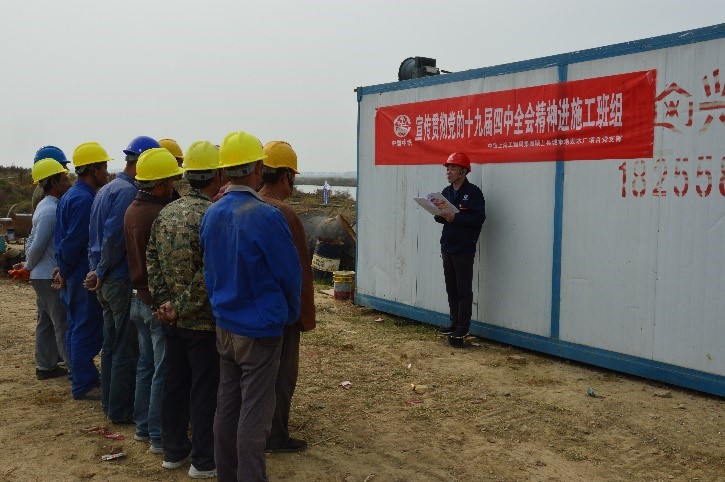 11月7日,潁上項(xiàng)目黨支部組織進(jìn)工區(qū)、進(jìn)班組活動(dòng)宣貫黨的十九屆四中全會(huì)精神。潁上水廠項(xiàng)目分為三個(gè)施工區(qū),相互距離較遠(yuǎn),且處于施工任務(wù)攻堅(jiān)的關(guān)鍵階段,為使黨的十九屆四中全會(huì)精神及時(shí)宣貫到項(xiàng)目的每名黨員干部、施工一線工人,落實(shí)黨的基層組織建設(shè),黨支部決定開展宣貫進(jìn)工區(qū)、進(jìn)班組活動(dòng)。每到一處宣貫現(xiàn)場(chǎng),項(xiàng)目書記向大家宣講會(huì)議召開背景、全會(huì)提出的總體目標(biāo)、工作要求等內(nèi)容,并結(jié)合專家解讀重申重點(diǎn)內(nèi)容,要求黨員干部統(tǒng)一思想和行動(dòng),以強(qiáng)烈的思想自覺、政治自覺和行動(dòng)自覺,攻堅(jiān)克難、銳意進(jìn)取,為加快推進(jìn)項(xiàng)目施工建設(shè),力保通水目標(biāo)實(shí)現(xiàn)而努力奮斗。結(jié)合項(xiàng)目建設(shè)存在的問題和面臨的困難,項(xiàng)目書記對(duì)項(xiàng)目下步工作做出以下部署:一是聚焦思想,項(xiàng)目部全體員工要認(rèn)真貫徹落實(shí)會(huì)議精神,以精神促思想,以思想保建設(shè)。二是充分發(fā)揮黨員模范示范作用、黨支部戰(zhàn)斗堡壘作用,黨員干部要找差距、抓落實(shí),解決項(xiàng)目的難點(diǎn)熱點(diǎn)問題,力保節(jié)點(diǎn)目標(biāo)完成。三是嚴(yán)格制度落實(shí),提升項(xiàng)目建設(shè),確保 “職工小家”建設(shè)有內(nèi)涵,員工有獲得感、幸福感、榮譽(yù)感。(楊巧巧)